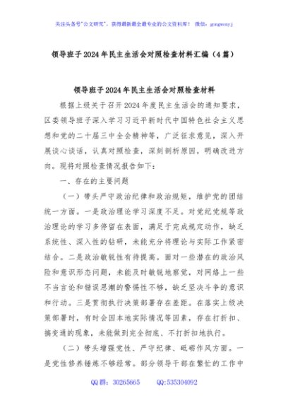 / (4篇)领导班子2024年民主生活会对照检查材料汇编