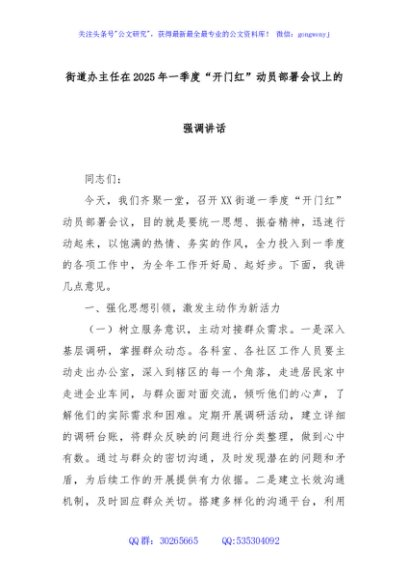 / 街道办主任在2025年一季度“开门红”动员部署会议上的强调讲话