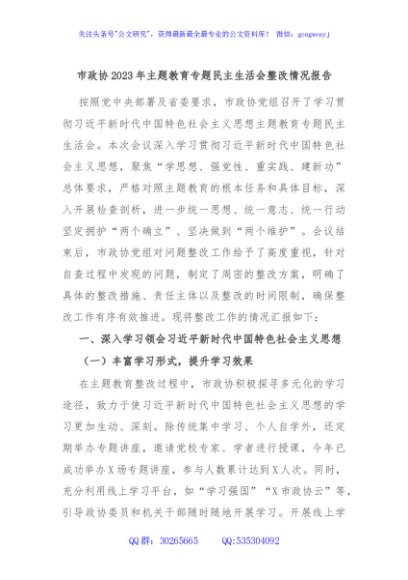 / 市政协2023年主题教育专题民主生活会整改情况报告