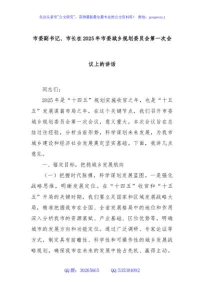 / 市委副书记、市长在2025年市委城乡规划委员会第一次会议上的讲话