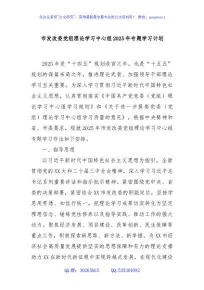 / 市发改委党组理论学习中心组2025年专题学习计划