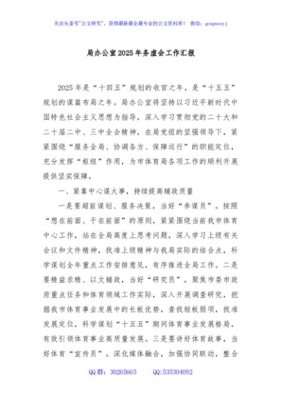 / 局办公室2025年务虚会工作汇报