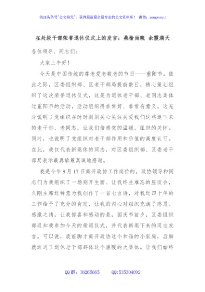 / 在处级干部荣誉退休仪式上的发言:桑榆尚晚 余霞满天