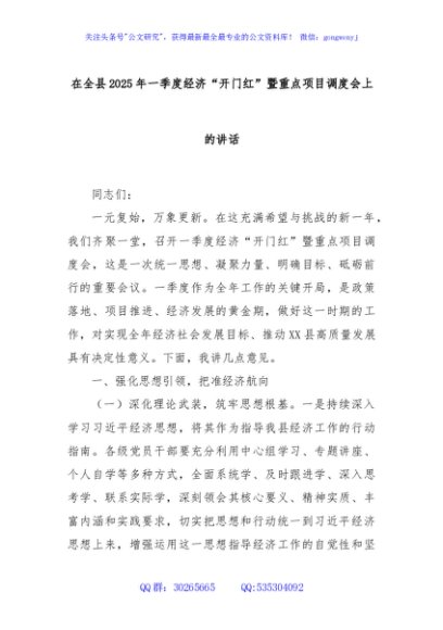 / 在全县2025年一季度经济“开门红”暨重点项目调度会上的讲话