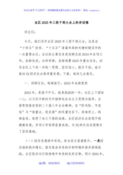 / 在区2025年三级干部大会上的讲话稿