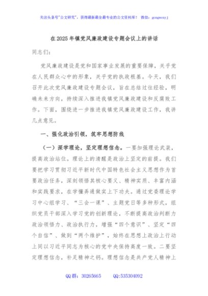 / 在2025年镇党风廉政建设专题会议上的讲话