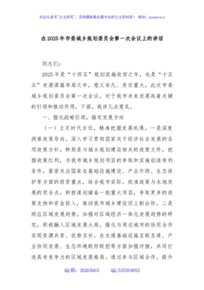 / 在2025年市委城乡规划委员会第一次会议上的讲话