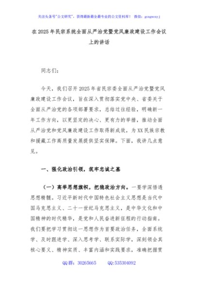 / 在2025年民宗系统全面从严治党暨党风廉政建设工作会议上的讲话