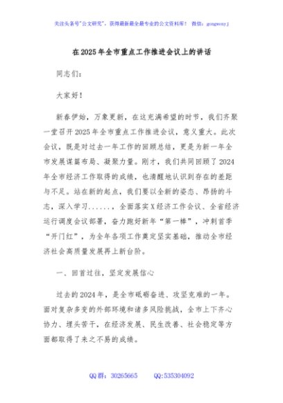 / 在2025年全市重点工作推进会议上的讲话