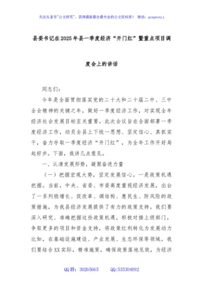/ 县委书记在2025年县一季度经济“开门红”暨重点项目调度会上的讲话