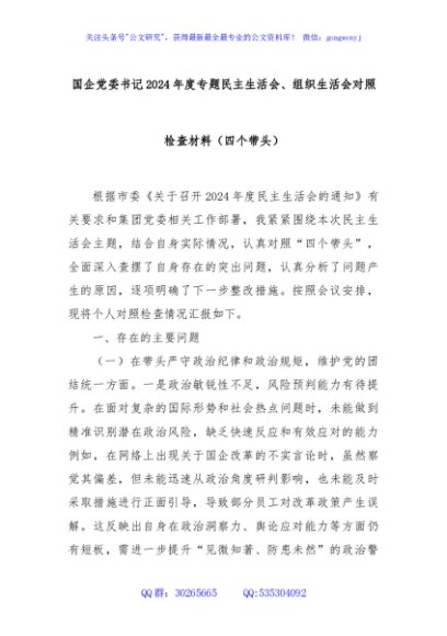/ 国企党委书记2024年度专题民主生活会、组织生活会对照检查材料(四个带头)