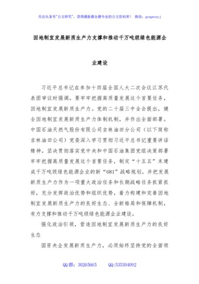/ 因地制宜发展新质生产力支撑和推动千万吨级绿色能源企业建设