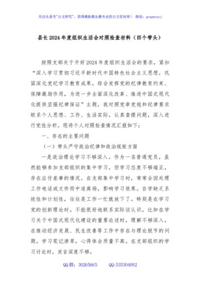 / 县长2024年度组织生活会对照检查材料(四个带头)