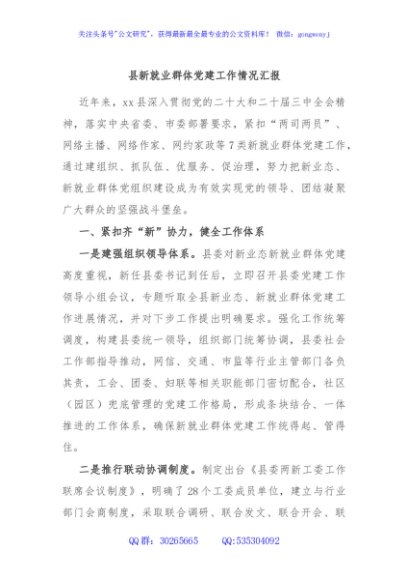 / 县新就业群体党建工作情况汇报