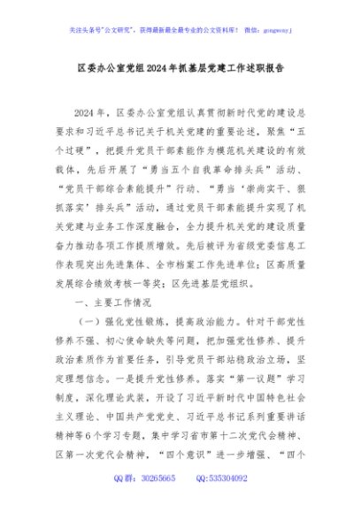 / 区委办公室党组2024年抓基层党建工作述职报告