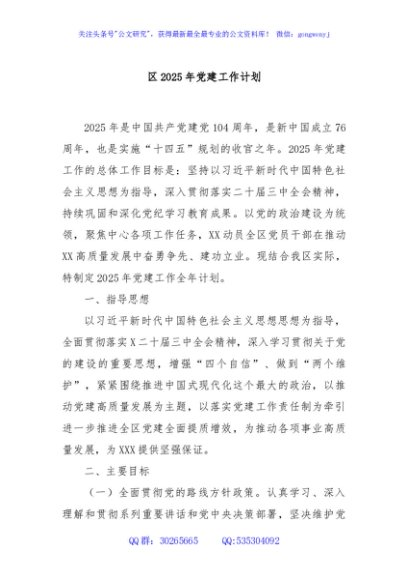 / 区2025年党建工作计划