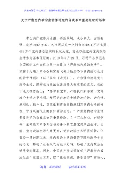 关于严肃党内政治生活推进党的自我革命重要经验的思考