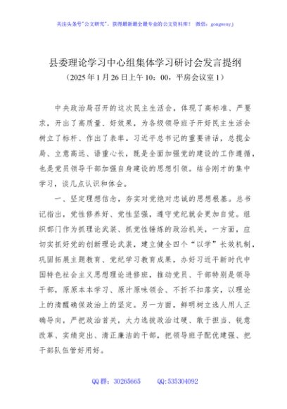 / 县委理论学习中心组集体学习研讨会发言提纲(20250126)