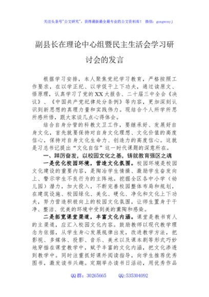 / 副县长在理论中心组暨民主生活会学习研讨会的发言