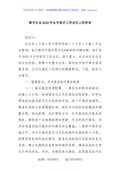 / 副市长在2025年全市医疗工作会议上的讲话