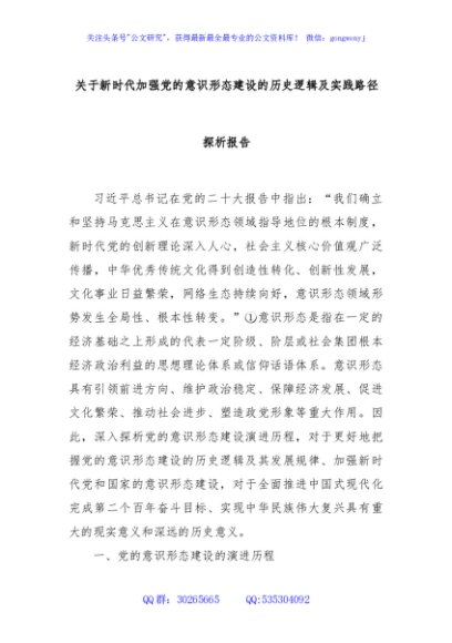 / 关于新时代加强党的意识形态建设的历史逻辑及实践路径探析报告