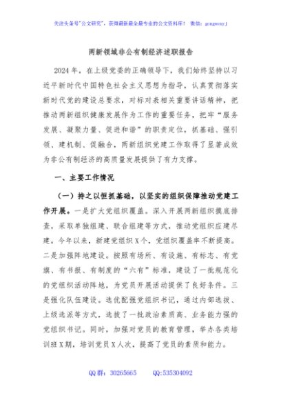 / 两新领域非公有制经济述职报告