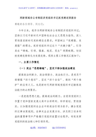 / 两新领域非公有制经济党组织书记抓党建述职报告