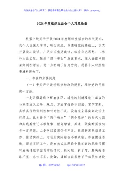 2024年民主生活会、组织生活会对照检查材料(聚焦“四个带头”)
