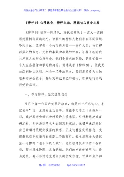/ 《榜样9》心得体会:榜样之光,照亮初心使命之路