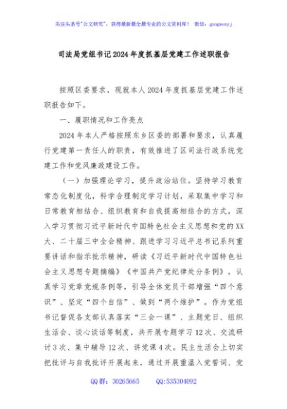 / 司法局党组书记2024年度抓基层党建工作述职报告