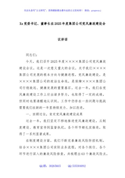 / Xx党委书记、董事长在2025年度集团公司党风廉政建设会议讲话
