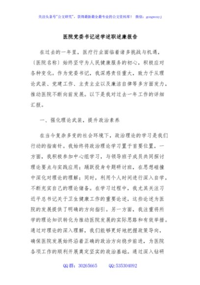 / 医院党委书记述学述职述廉报告