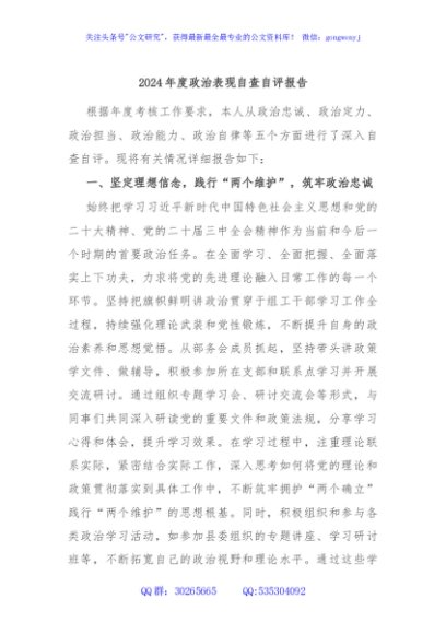 / 2024年度政治表现自查自评报告