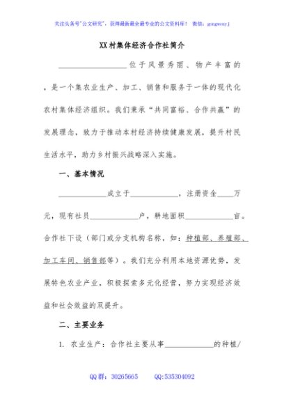/ 1.XX村集体经济合作社简介