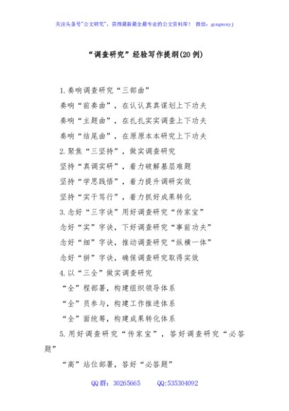 (20例)“调查研究”经验写作提纲