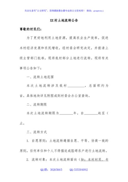 / 2.XX村土地流转公告