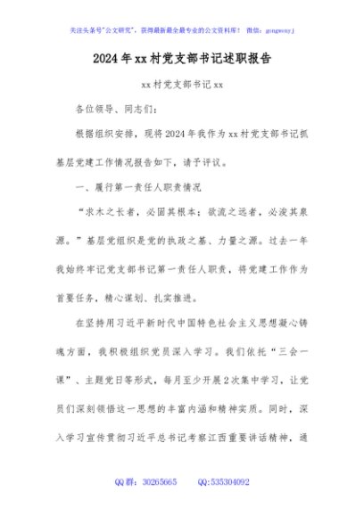 / 2024 年 xx 村党支部书记述职报告(提升版)