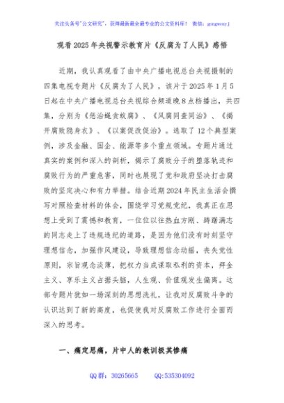 / 观看2025年央视警示教育片《反腐为了人民》感悟