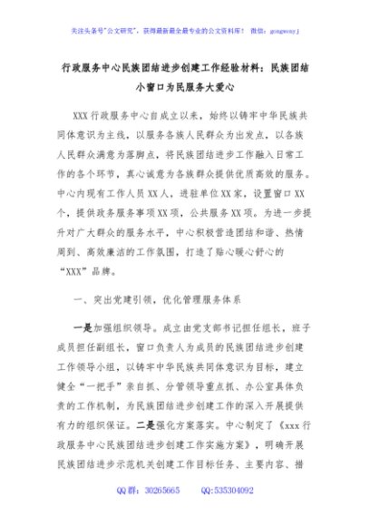 / 行政服务中心民族团结进步创建工作经验材料:民族团结小窗口为民服务大爱心