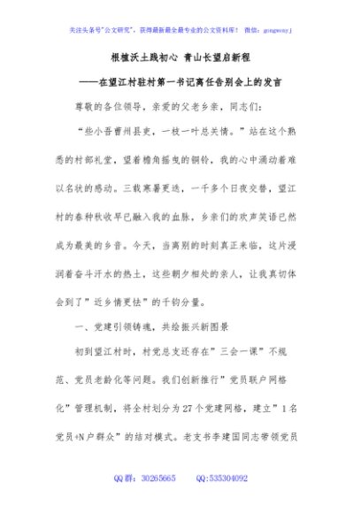 / 精品美文:在望江村驻村第一书记离任告别会上的发言