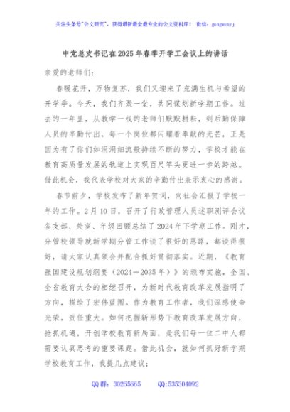 / 中党总支书记在2025年春季开学工会议上的讲话