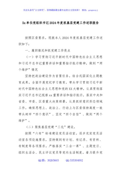 / Xx单位党组织书记2024年度抓基层党建工作述职报告
