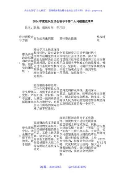 / 2024年度组织生活会领导干部个人问题整改清单