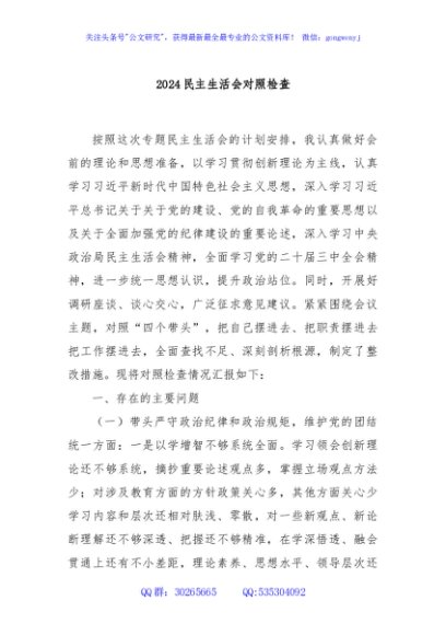 / 2024民主生活会对照检查