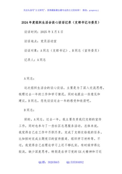 / 2024年度组织生活会谈心谈话记录(支部书记与委员)