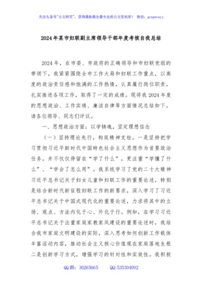/ 2024年某市妇联副主席领导干部年度考核自我总结