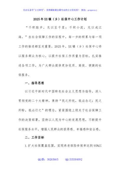 / 2025 年 XX 镇(乡)社保中心工作计划