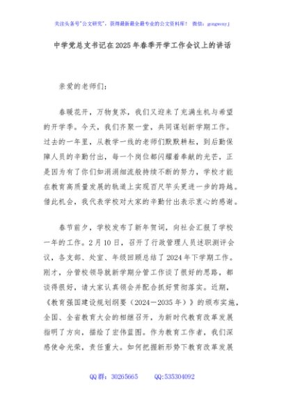 / 中学党总支书记在2025年春季开学工作会议上的讲话