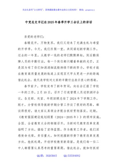 / 中党总支书记在2025年春季开学工会议上的讲话
