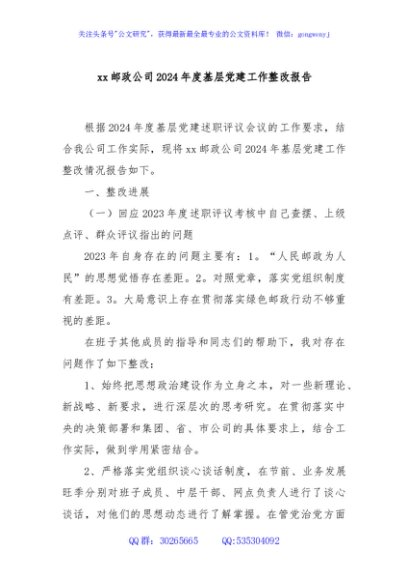 xx邮政公司2024年度党支部书记抓基层党建述职报告
